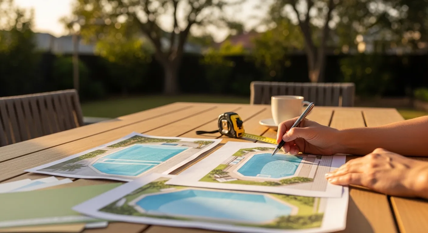Fibreglass vs Concrete Pools: Detailed comparison - fibreglass advantages (faster installation, lower maintenance, smooth surface, algae-resistant) vs concrete advantages (unlimited customisation, larger sizes possible, premium finishes, longer lifespan). Cost comparison, maintenance requirements, resale value impact, and best use cases for each type.
